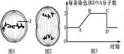 4、选择题 图1、图2分别表示某种生物有丝分裂某一时期的模式图,图3表示有丝分裂中不同时期每条染色体上DNA分子数的变化。下列有关叙述不正确的是