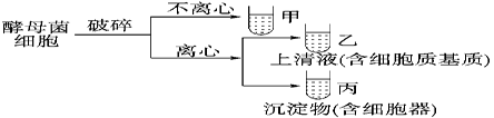 5、选择题 将酵母菌培养液进行离心处理,得到沉淀的酵母菌细胞,将沉淀的酵母菌细胞进行如下处理:向甲、乙、丙3个试管中同时滴入等量的葡萄糖溶液。在有氧条件下,最终产生CO2和H2O的试管是