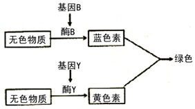 3、连线题 某种鸟的羽色受两对相互独立的等位基因控制。基因B控制蓝色素的合成,基因Y控制黄色素的合成,bbyy个体显白色,其遗传机理如下图所示,请回答: