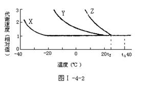1、选择题 图Ⅰ-4-2所示3种哺乳动物由于周围环境温度变动而发生的代谢速度变化。在以下叙述中不正确的是