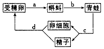 5、选择题 如图为自然界中青蛙的生殖周期示意图,下列有关叙述中正确的是