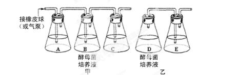 4、选择题 下图为“探究酵母菌细胞呼吸的方式”的实验装置图,据图分析不正确的说法是