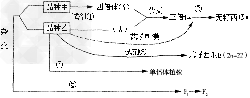 1、选择题 已知西瓜的染色体数目2n=22,根据下面的西瓜育种流程,下列叙述错误的是[???? ]