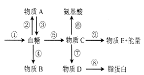 4、选择题 下图表示人体内的部分物质代谢(其中物质E代表一种或两种物质)。下列有关叙述,正确的是