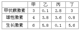 据表分析:乙、丙、丁分别被切除的内分泌腺依次是[???? ]