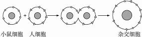 3、选择题 将小鼠细胞和人体细胞融合成杂交细胞后,各自的表面蛋白质平均分配到膜表面(如下图),该实验说明了细胞膜( )