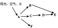 4、选择题 如下图中A、B、C、D、E、F各代表某食物网中的一种生物,据图分析合理的是