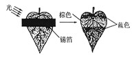 1、选择题 如图表示德国科学家萨克斯的实验。把绿色叶片放在暗处几小时后,再把叶片的一部分遮光,其它部分曝光。一段时间后,经脱色、漂洗再用碘液处理,结果遮光部分不变蓝,曝光部分变蓝。本实验说明???????????????????????????????????