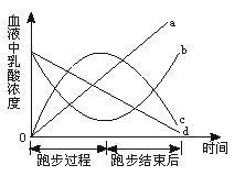1、选择题 下图中能够说明运动员在中长跑过程中和长跑结束后血液乳酸浓度变化的曲线是