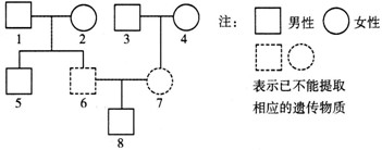 2、选择题 为了鉴定下图中男孩8与本家族的亲缘关系,下列方案最科学的是