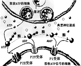 5、连线题 研究证实ATP既是“能量通货”,也可作为神经细胞间信息传递中的一种信号分子,其作为信号分子的作用机理下图所示。请分析回答: