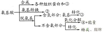 5、选择题 下图为氨基酸在哺乳动物体内的变化情况,其中①和④各代表的物质依次是
