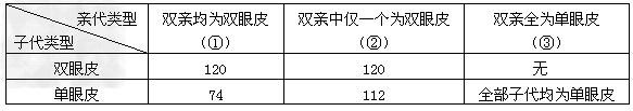 2、填空题 某校高一年级研究性学习小组调查了人的眼皮遗传情况,他们以年级为单位对班级的统计进行汇总和整理,见下表:试分析表中情况,并回答下列问题: