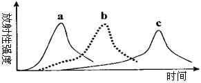 (6)如果上图是哺乳动物的乳腺细胞,用35S标记一定量的氨基酸来培养该细胞,测得细胞内三种细胞器上放射性强度的变化曲线如下图所示,下图中的a、b、c曲线所指代的细胞器依次分别是中的_______(填名称)。