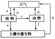 4、选择题 如图是我国北方处于平衡状态的某森林生态系统的碳循环示意图,其中箭头表示碳的传递方向,字母表示碳传递途径。则下列叙述错误的是