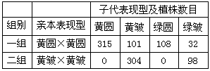 (5)该同学为验证自己对第一组亲本基因型推断的正确性,将其与绿色皱粒豌豆进行杂交,得到杂交后代的表现型是黄圆、黄皱、绿圆、绿皱,数量比是__________。