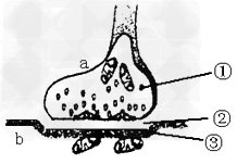 A.①中内容物使b兴奋时,兴奋部位的膜对Na+通透性减小