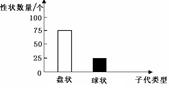 本题解析:试题分析:从图中分析可知,杂交后代中盘状为75,球状为25,说明杂交后代发生了性状分离,比例为3:1。所以选用的亲本是Gg(盘状)× Gg(盘状),选B。