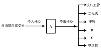 选择题 下图为人体体温调节示意图。相关叙述不正确的是A.A为下丘脑体温调节中枢B.人体受到寒冷刺激时, B骨骼肌会不自主战栗,热量增加C.C分泌的肾上腺素与甲状腺激素具有协同 91ExAM.org作用D.在炎热环境时,人体主要通过减少产热,增加散热来调节体温