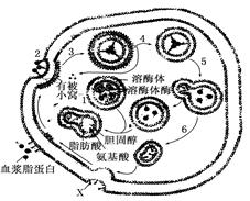 5、选择题 随着生活水平的提高和生活方式的改变,高血脂人群相对增多。脂类在血液中以脂蛋白的形式进行运送,并可与细胞膜上存在的特异受体相结合,进入细胞内进行代谢(如下图所示)。对该图分析不合理的是