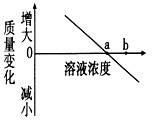 5、选择题 在保持细胞存活的条件下,蔗糖溶液浓度与萝卜条质量变化的关系如下图所示。若将处于b浓度溶液中的萝卜条移入a浓度溶液中,则该萝卜条的质量将