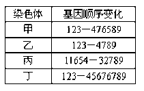 3、选择题 果蝇的一条染色体上,正常基因的排列顺序为123-456789,“-”代表着丝点,下表表示了由该染色体发生变异后基因顺序变化的情况。 有关叙述错误的是