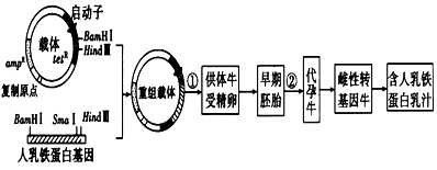 (1)图中将人乳铁蛋白基因插入载体,需用_______限制酶同时酶切载体和人乳铁蛋白基因。筛选含有重组载体的大肠杆菌首先需要在含_______的培养基上进行。