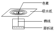 4、选择题 某同学在做色素分离实验过程中,积极改进实验。设计了如下图实验,由此在吸水纸上得到四个同心圆,试问同心圆的最外层色素圈为: