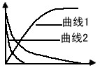 (2)如果下图表示的是在pH=7.0的试管中过氧化氢的量随时间的变化,请在图中画出氧气生成总量随时间的变化曲线(标注曲线1)和酶量增加一倍的时候过氧化氢含量随时间的变化曲线(标注曲线2)。