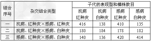 2、选择题 下表为3个不同小麦杂交组合及其子代的表现型和植株数目:据表分析,下列推断错误的是