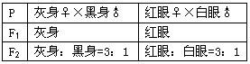 3、综合题 果蝇是一种非常小的蝇类,遗传学家摩尔根曾因对果蝇的研究而获得“诺贝尔奖”。果蝇的灰身对黑身为显性,基因位于常染色体上;红眼对白眼为显性,基因位于X染色体上。摩尔根等研究时发现: