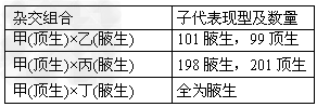 3、选择题 豌豆花的顶生和腋生是一对相对性状,根据下表中的三组杂交实验结果,判断显性性状和纯合子分别为