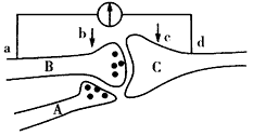 3、选择题 下图是较为复杂的突触结构,在a、d两点连接一测量电位变化的灵敏电流计,下列分析不正确的是