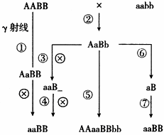1、选择题 两个亲本的基因型分别是AAbb和aaBB,这两对基因按自由组合定律遗传。要培育出基因型aabb的新品种,最简捷的方法是