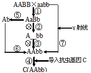 (1)由品种AABB、aabb经过①、②、③过程培育出新品种的育种方式称为___________;经过①⑤⑥培育出新品种的育种方式称为__________________;经过⑦培育出新品种的育种方式称为_____________;若经过②过程产生的子代总数为1552株,则其中基因型为AAbb理论上有____________株。基因型为Aabb的类型经过过程③,子代中AAbb与aabb的数量比是_____________。