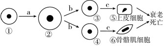 3、选择题 下图为人体某早期胚胎细胞所经历的生长发育阶段示意图,图中①~⑥为各个时期的细胞,a~c表示细胞所进行的生理过程。据图分析,下列叙述不正确的是