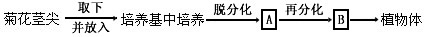 3、连线题 下图是基因型为AaBb的菊花茎尖离体培养示意图,据图回答下列问题:
