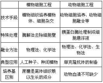 2、选择题 下表比较了动、植物细胞工程的有关内容,不正确的有
