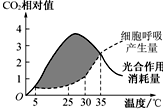 D.整段曲线表明随温度的递增,细胞呼吸增强,光合作用减弱