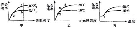 C.图中M、N点的限制因素是光照强度,与二氧化碳浓度、温度无关;P点的限制因素主要是温度。选C。