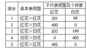 ①紫花×紫花→紫花 ②紫花×紫花→301紫花+101白花 ③紫花×白花→紫花 ④紫花×白花→98紫花+107白花