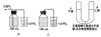 D.A液面低于B,因为乙进行无氧呼吸,分解的葡萄糖少,溶液浓度大