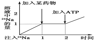 3、选择题 下面是科学家所做的一组生物学实验:先向乌贼神经纤维里注入微量的放射性同位素24Na, 不久可测得神经纤维周围溶液中存在24Na。若在神经纤维膜外溶液中先后加入某药物和ATP,测得神经纤维周围溶液中24Na的量如图所示。关于该实验的下列说法中,错误的是