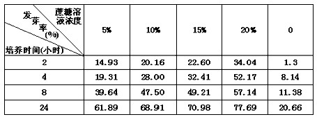 C.蔗糖溶液浓度相同,在一定范围内,花粉的萌发率随培养时间的延长而增大
