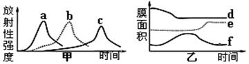 3、选择题 实验中用35S标记一定量的氨基酸,来培养某哺乳动物的乳腺细胞,测得与合成和分泌乳蛋白相关的一些细胞器上放射性强度的变化曲线如图甲所示,以及在此过程中有关的细胞结构膜面积的变化曲线如图乙所示。图中曲线所指代的细胞结构相同的是