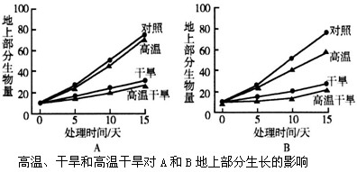 (4)对这两个辣椒品种的呼吸强度进行测量,高温、干旱共同胁迫使其呼吸强度下降,以处理的第5天为例,处理组A、B两品种的呼吸强度分别为对照组的58%和42%,结合图中地上部分生物量的变化,说明_______品种植株在该条件下光合作用强度下降更多,总体上说____________品种辣椒更耐受高温且干旱的不良环境。