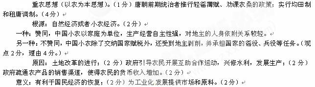 (2)根据材料二的内容,分析决定“中国农村原本是一个自治的社会”的经济根源是什么?(1分)材料中说中国古代农民“交了粮,自由王”,你赞同此观点吗?简要说明理由。(4分)