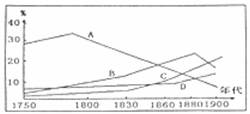 3、判断题 下面是英、美、德、中四个国家的制造业在世界制造业产值中所占比重的曲线示决心书图,图中的“B”曲线代表的国家是?