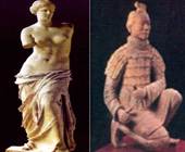 4、判断题  右图是公元前3世纪前后,古希腊的著名雕像《维纳斯》和中国秦朝的兵马俑。下列对两者的表述正确的是(?)