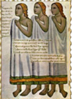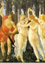 4、判断题 图一是中古时期的《三女神》画像。中古时期,由于受到宗教上的束缚,人们并不欣赏人体美。作品中的三女神平板、单调、僵硬且面无表情。图二是文艺复兴时期的《三女神》画像。作品极力赞扬人体之美,将世俗生活中人的形象注入神的形象中,所塑造的宗教人物是有血有肉有思想感情的人。